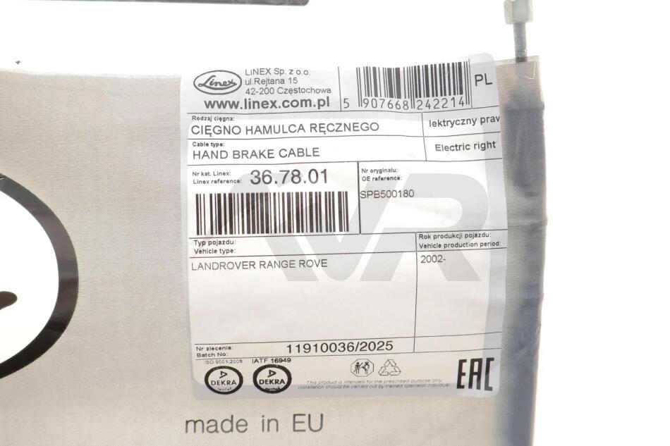Трос ручника (R) Land Rover Range Rover 02-12 (L=900/710mm) LINEX 36.78.01