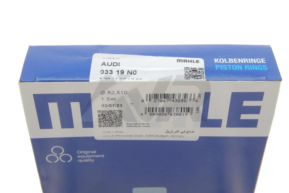 Комплект поршневых колец из 3 шт.. MAHLE / KNECHT 033 19 N0