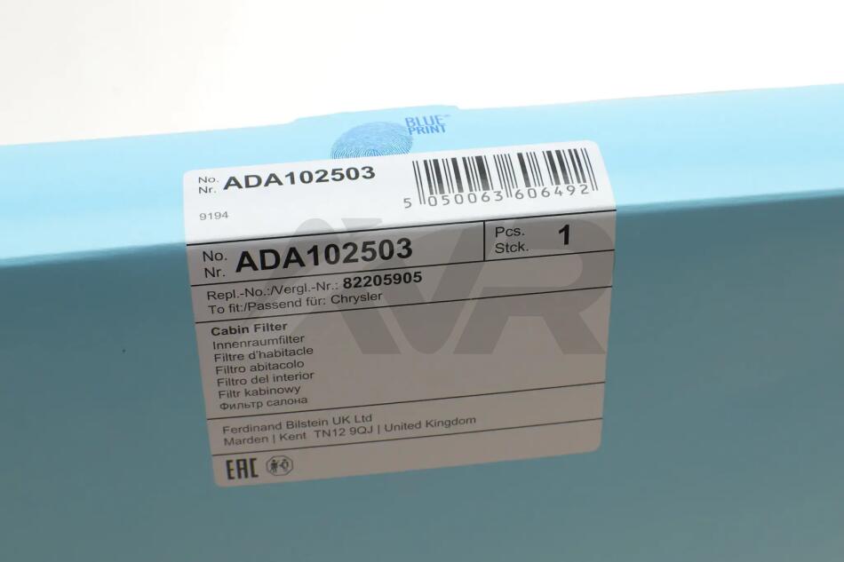 Змінний фільтруючий елемент повітряного фільтра салону BLUE PRINT ADA102503
