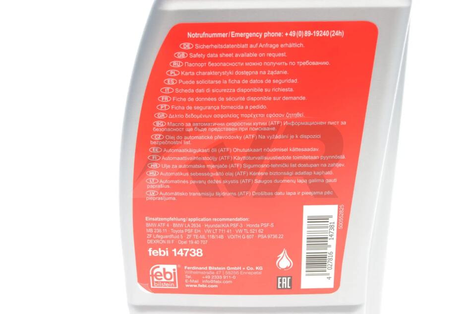 К-т сервісний АКПП(рідина для гідравл. передач 14738 5x1L + фільтр АКПП з прокладкою) FEBI BILSTEIN 176856