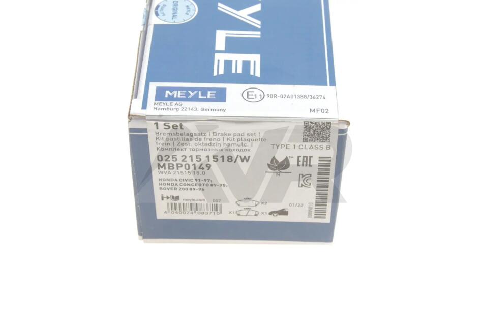 Комплект гальмівних колодок MEYLE 025 215 1518/W