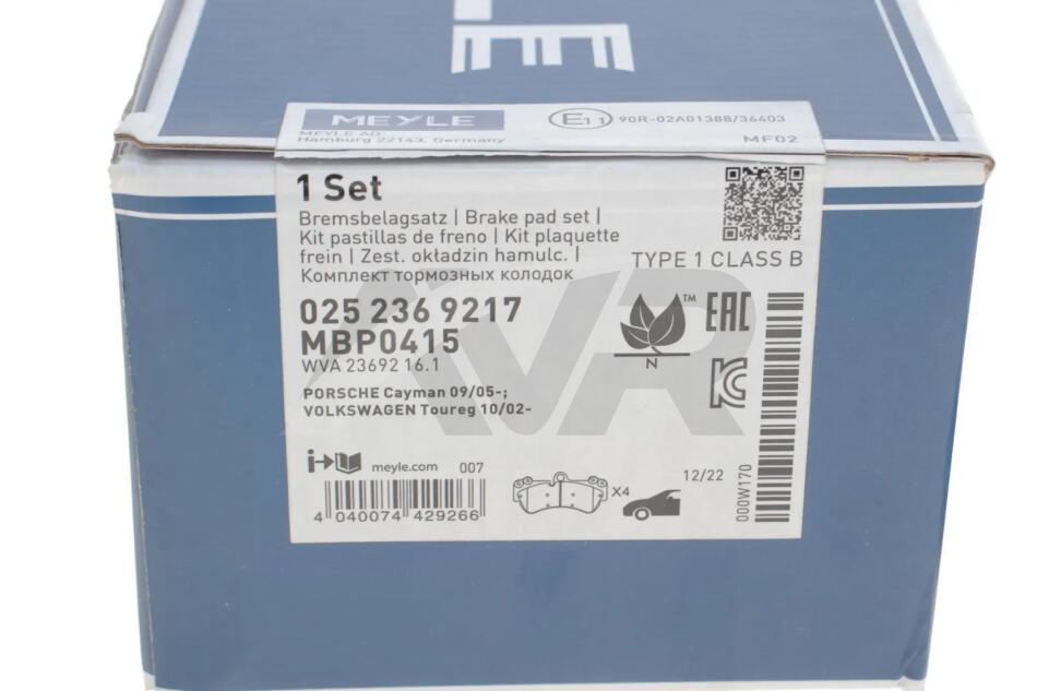 Комплект гальмівних колодок MEYLE 025 236 9217