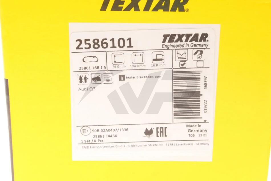- TEXTAR 2586101 підходить до марок/моделей авто: